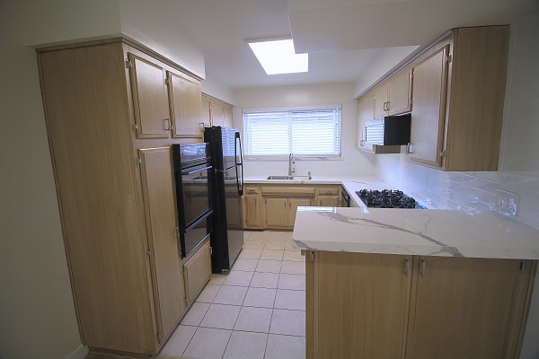 Remodeled Kitchen with Porcelain carrera counters, custom cabinets and new appliances